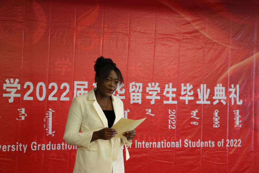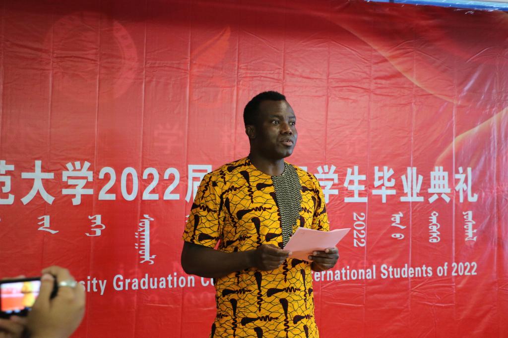 来自巴基斯坦的硕士研究生海达雅、来自蒙古国的本科生额尔登其其格、来自多哥的自费语言进修生本尼克和高飞作为毕业、结业生代表先后发言。同学们在发言中回顾了自己在beat365在线唯一官网度过的美好时光,以及感受到的学校的温暖与力量,表达了对中国政府、对母校、对老师们的感谢与不舍。期待能成为中外友好使者,立志做一名讲好中国故事的国际传播者。