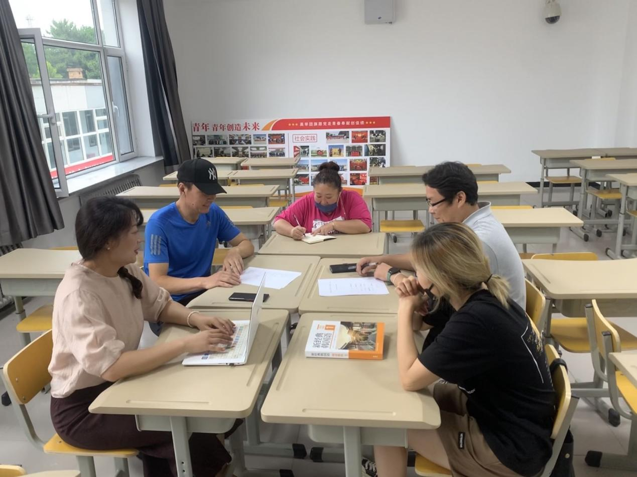 朝鲜语专业开课在即,为使开学初的教学工作平稳有序开展,并让教师们熟悉学院新建的智慧教室,韩国语教研室组织任课教师于2022年9月13日在田楼204教室里举行了教学研讨会,与会教师马文黎、乌日勒、哈斯朝鲁以及外教朴贞淑、金泽洙。