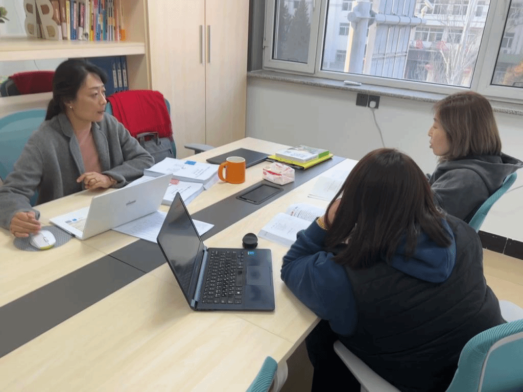 韩国语教研室的第一次教学研讨会于2023年3月2日在韩国语教研室里进行,与会教师马文黎、乌日勒以及外教朴贞淑。