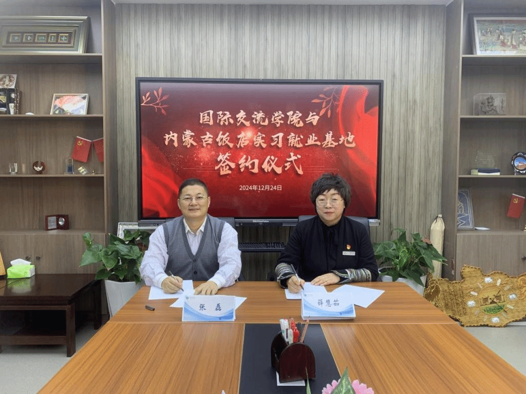 2024年12月24日下午,beat365在学院314会议室举行了与内蒙古饭店有限责任公司共建实习就业基地的签约仪式。此次合作旨在为学生提供更广阔的实践平台和就业机会,同时也为内蒙古饭店注入更多高素质的人才资源。