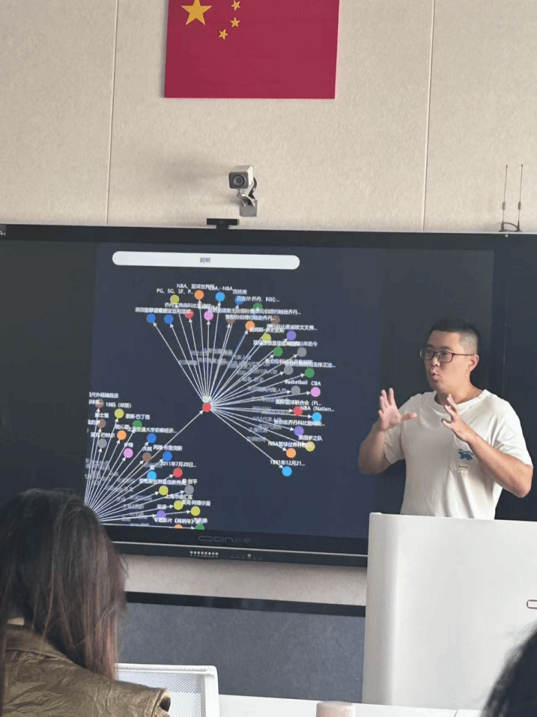 在分享会上,ISEC教研室两位教师分别介绍了培训期间的主要学习内容和实践经验,详细讲解了知识图谱的构建流程、数据处理与可视化方法,展示了人工智能在文献检索、科研辅助、教学资源推荐等方面的应用案例,并结合学院课程教学实际,提出了将知识图谱技术融入课堂教学和科研项目的具体思路。