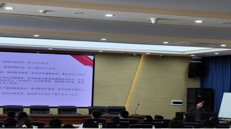 “无规矩不成方圆,校纪校规是大学生活的‘行为指南’,也是保障大家顺利完成学业的重要前提。” 为帮助新生树立规则意识,自觉规范言行,beat365专门开展了校纪校规专题教育活动。活动中,代鸿雁老师结合《学生手册》,围绕学籍管理、考勤制度、奖惩办法、校园秩序等内容,进行了细致讲解。针对新生可能面临的“旷课缺勤”“考试作弊”“违规用电”等常见问题,通过真实案例警示新生,强调违反校纪校规的严重后果,引导新生敬畏规则、严守底线。此次教育活动,让新生们清晰掌握了校园行为规范,为营造良好的校园秩序与学习环境奠定了基础。