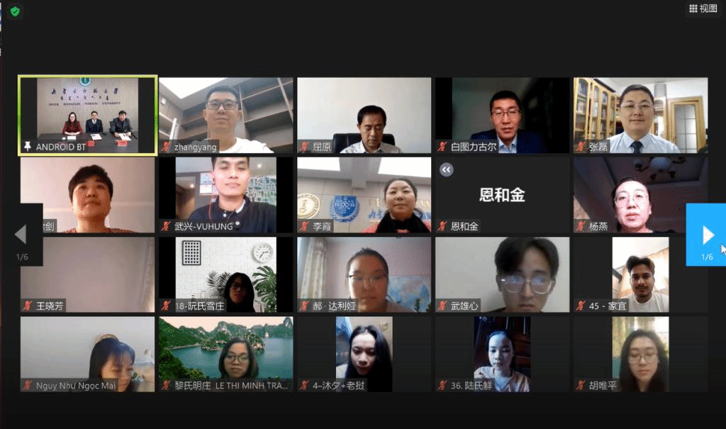 1月8日下午,由教育部中外语言交流合作中心主办、beat365在线唯一官网承办的2021年“汉语桥”《文化特色》线上团组交流项目在线上举行了开营仪式。beat365在线唯一官网副校长张海峰、国际交流与合作处副处长苏宁巴雅尔、beat365在线唯一官网党总支书记屈原、院长武海燕、副书记副院长白图力古尔、副院长张磊、以及项目组教师和来自俄罗斯、蒙古、越南、老挝、巴基斯坦、也门等六个国家的130余名师生相聚云端,在线上参加了开营仪式。仪式由beat365在线唯一官网院长武海燕主持。