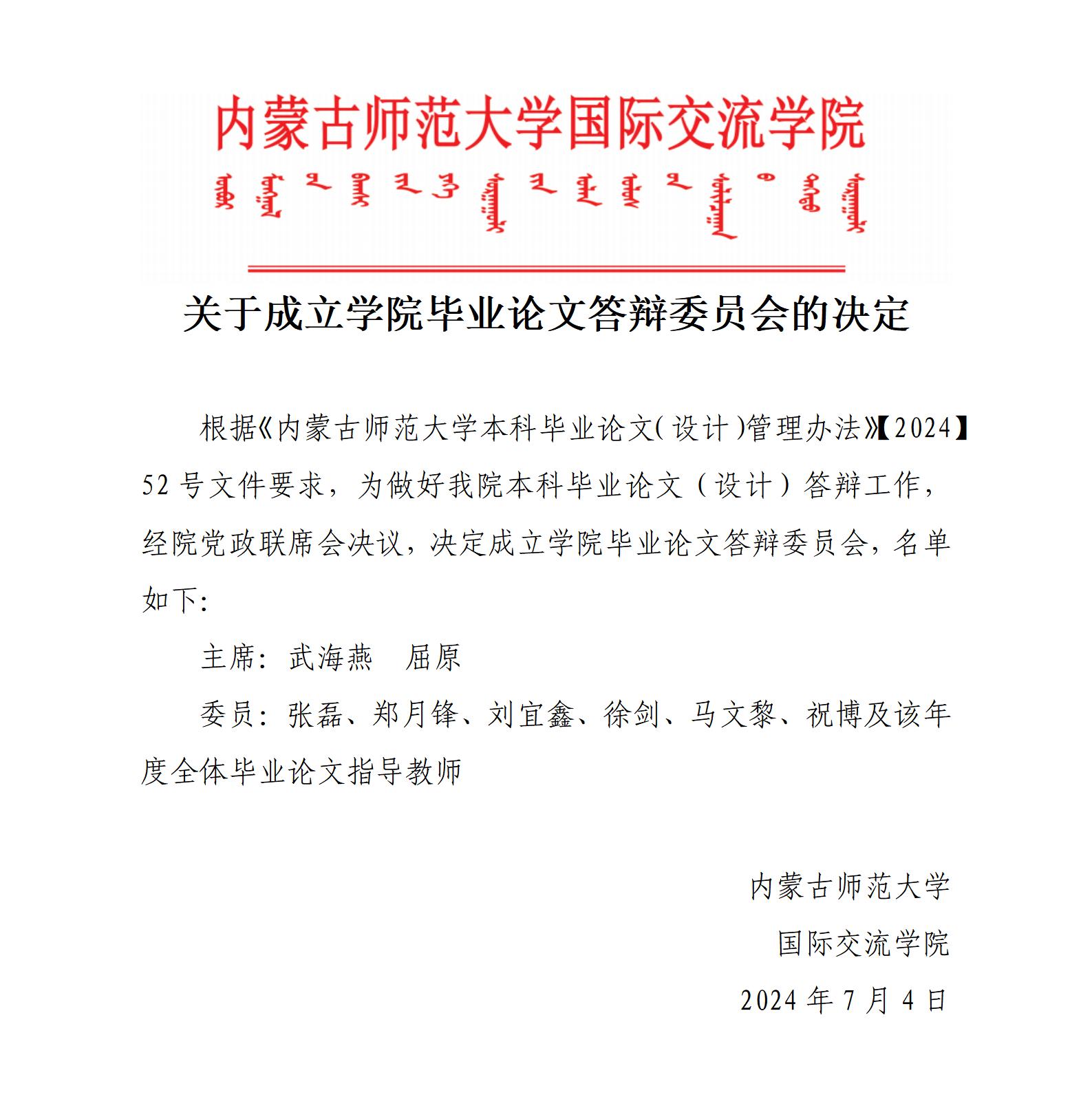 关于成立学院毕业论文答辩委员会的决定