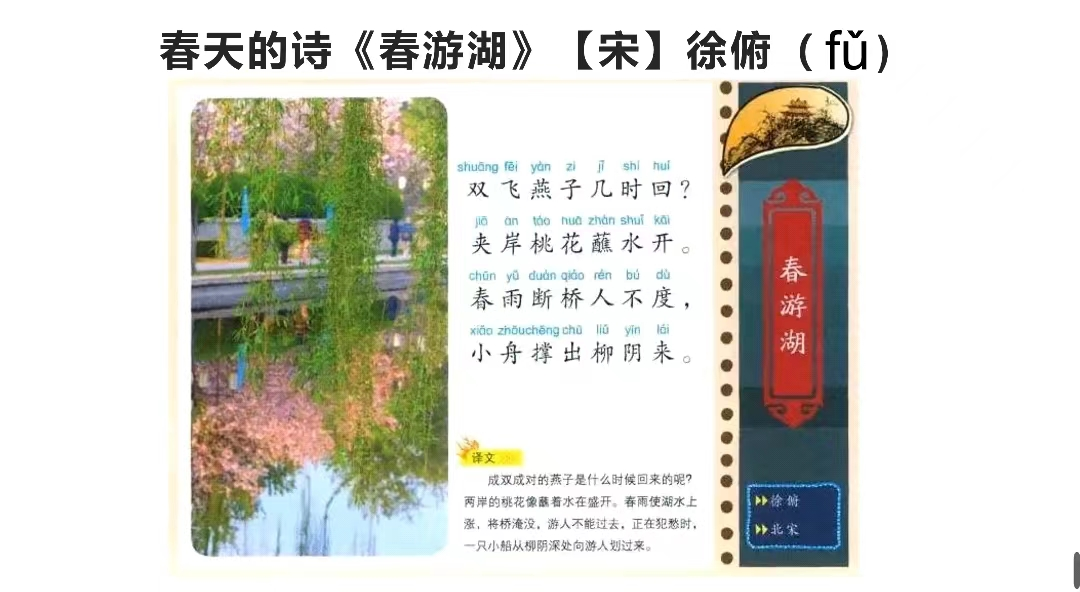桃红柳绿的春山,煦暖的阳光照耀,和柔的东风吹拂,杨柳依依,黄莺啼啭,看不尽的春日美景,写不尽的春日美诗。