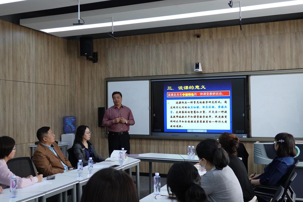 王教授从说课的定义、说课的特点、说课的意义、说课的安排、如何“说课”、说课的结构、说课的四原则、说课的三个层次和“说课”的要求等九个方面对如何说课进行了详细介绍。王教授还借助说课的实际范例,结合多位老教师的说课经验,引导教师们熟悉“说案”设计,指出各位教师可不拘一格按照自己的思路来进行说课,要善于体现自己的教学设计特长与创新,努力将课程教学设计中最精彩的部分充分表达出来。