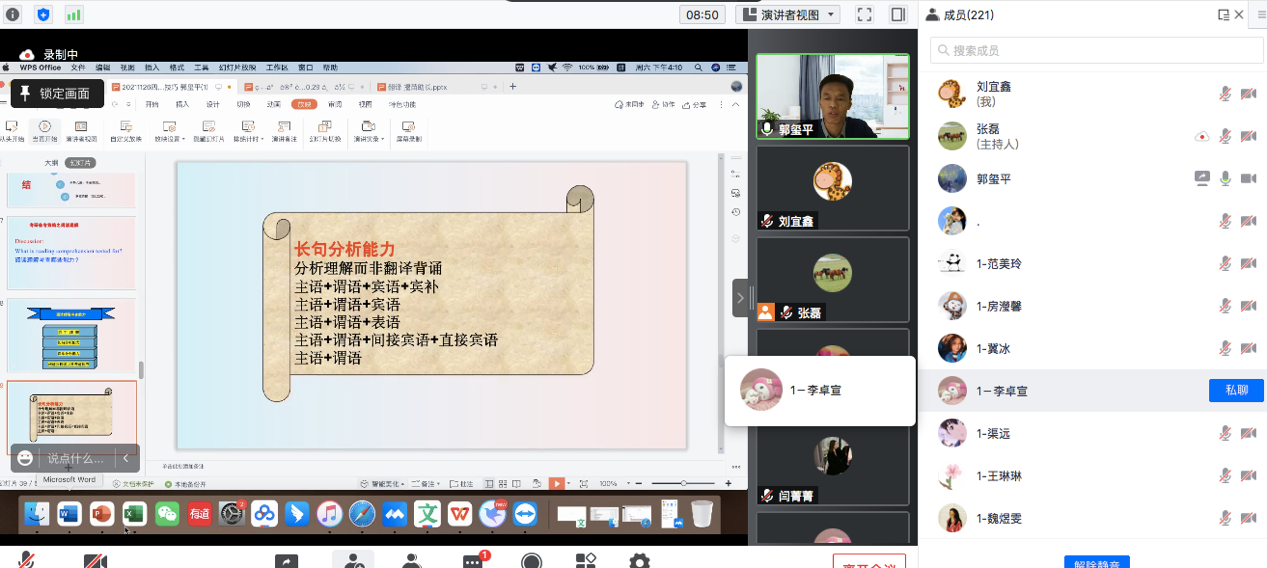 10月29日下午beat365继续邀请学校教学名师郭玺平通过线上讲座的形式,为2021级ISEC旅游管理学生开展了第二场大学英语四级考试讲座。beat365在线唯一官网副院长张磊以及相关教师参加了本次讲座,讲座由张磊副院长主持。