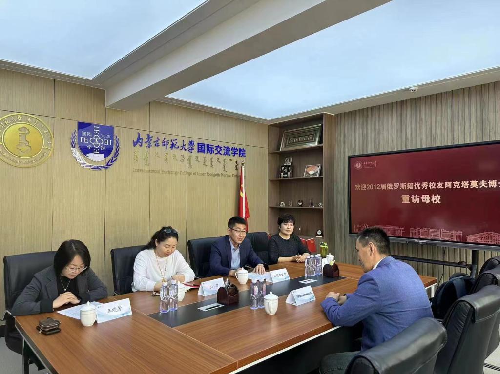 阿克塔莫夫与学院领导、教师进行了亲切地交流。白图力古尔副书记欢迎阿克塔莫夫的到来,为他现在取得的成绩感到骄傲与自豪,同时他还详细介绍了学院近年来的发展与变化,希望阿克塔莫夫多回家看看,助力母校发展。阿克塔莫夫也深情回忆了求学期间难忘的经历,感谢学院对自己的培养。他指出,母校的培养奠定了人生科研和事业的基础,虽然从母校毕业多年,但和母校的联系一直没有间断。这次回到母校感觉非常亲切,并祝愿学院和母校的明天愈加美好。