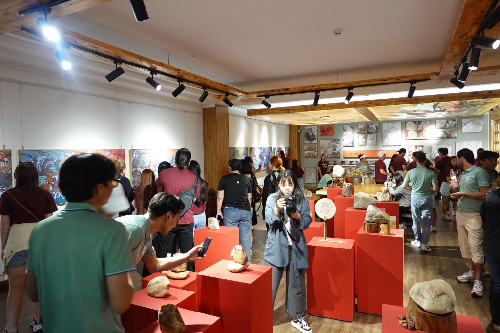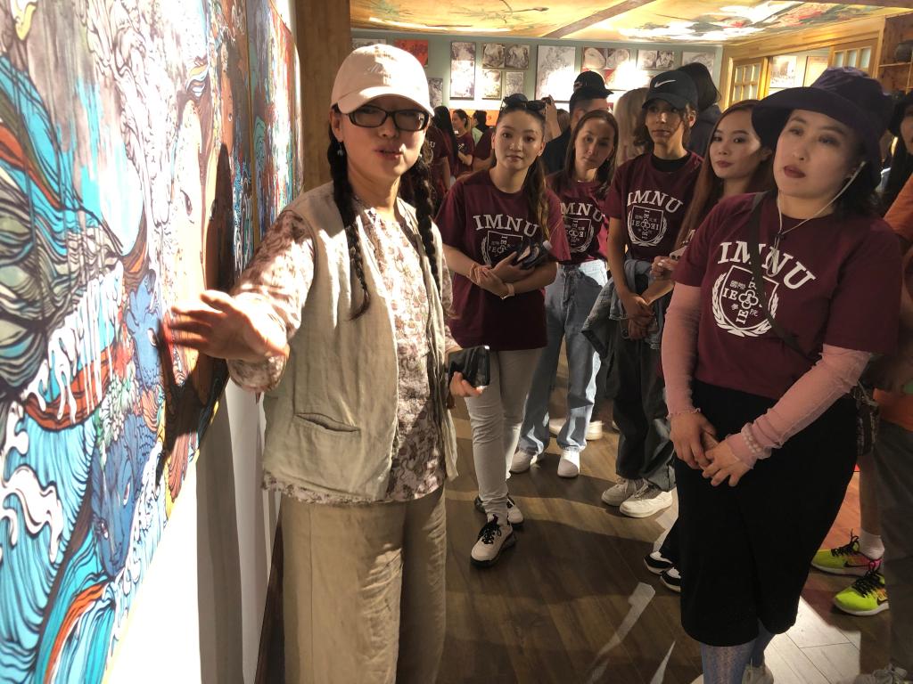 随后,我们来到乌海市海南区书画院。在书画院院长、国家二级美术师鲁婷的讲解下,了解了黄河石头彩绘系列画。留学生认真观赏彩绘石头的瑰丽,并和鲁婷老师亲切交流。黄河文化是中华民族先民在与自然的和谐相处中创造的物质与精神文明。通过参观黄河石彩绘作品,留学生们感受到黄河文化的源远流长。之后到书法展厅进行参观,留学生仔细研究评论书法作品,在思想上受到深刻的洗礼,艺术上受到美的熏陶。留学生们纷纷表示,中国传统文化博大精深,散发着中华民族特有的魅力。
