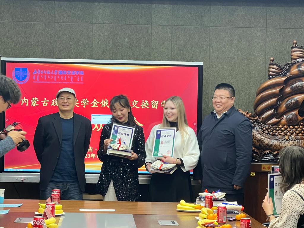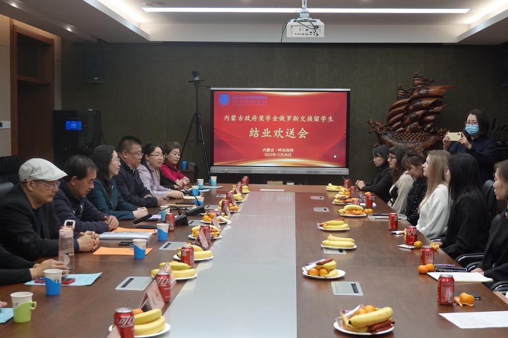 beat365在线唯一官网于2023年12月28日下午在赛罕校区文史楼二号会议室举办了2023届俄罗斯交换留学生结业欢送会。beat365在线唯一官网党总支书记屈原、院长武海燕、副院长张磊、副院长郑月锋、学院相关老师们和10名俄罗斯留学生参加了会议。会议由三月老师主持。