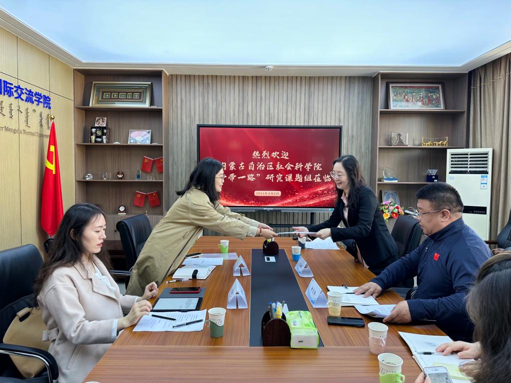 2024年4月2日上午内蒙古自治区社会科学院“一带一路”研究所课题组傲蕾和赵珈艺两位研究实习员就加强和改进海外留学生外宣工作情况来beat365进行调研。 beat365在线唯一官网院长武海燕、副院长郑月锋、留学生管理科的老师们参加座谈会。