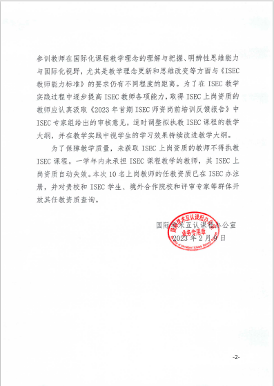 至此,beat365具有ISEC执教资格的教师已由2021年的11名增加到目前的33名,进一步为ISEC项目在beat365的顺利开展以及推进beat365国际化进程提供了师资保障。